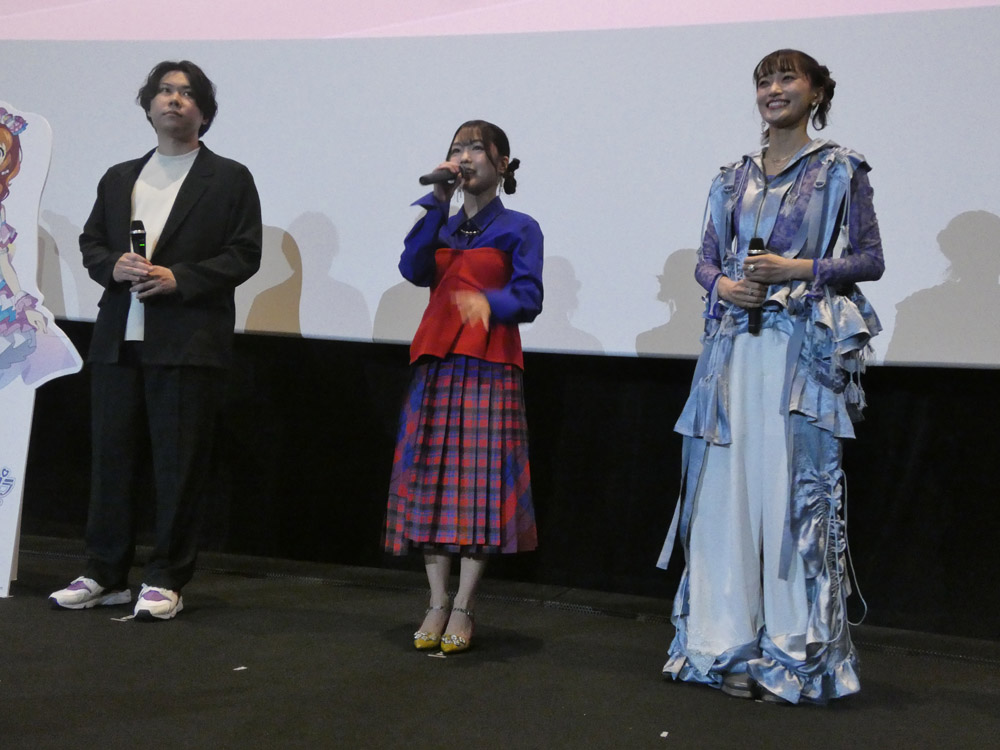 茜屋さんは「私も完成した物を見させて頂いて、携わっている一人一人の皆様に感謝を述べたいし、一ファンとしても感動しました。ネタバレは出来ませんが、皆さんの愛をたくさん頂いて、監督やアイカツのファンの皆さんんと会うのは初めてでした。本日はありがとうございました。」