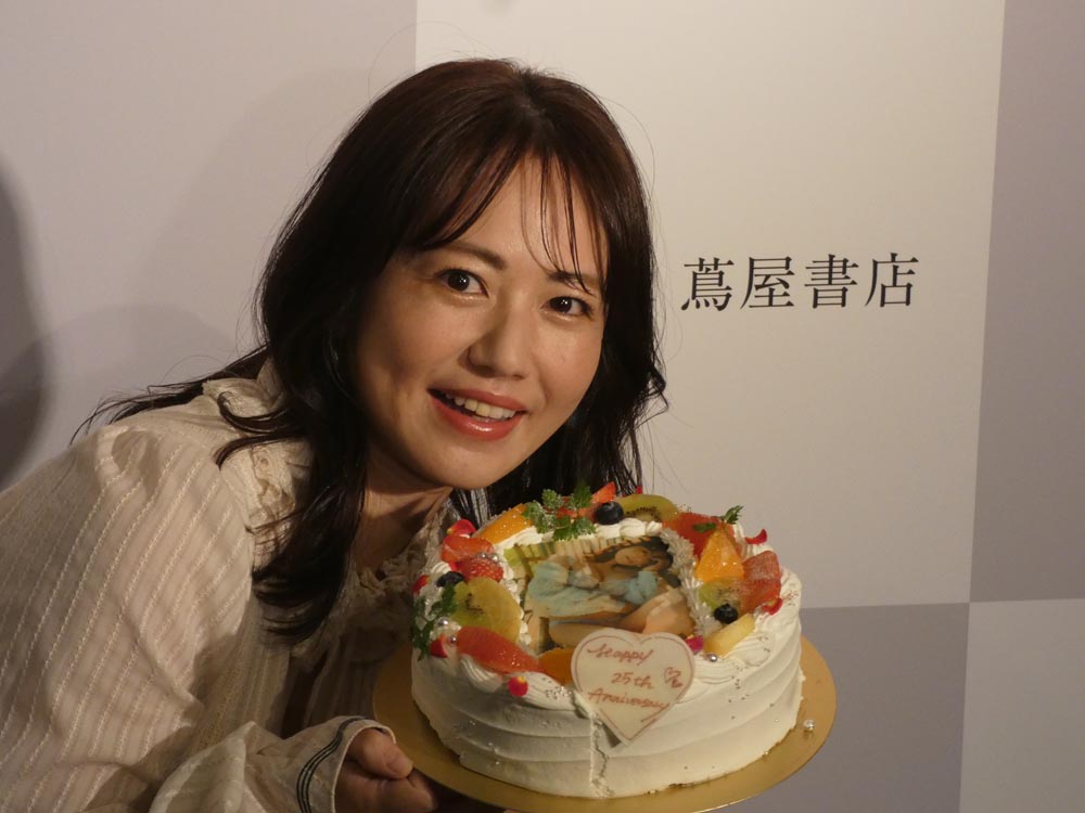 磯山さんが登壇されると、記者会見会場からも25年前と今でも変わらない美貌の持ち主に、驚きの声が出ていました。四半世紀おめでとうケーキも出ていて、「これはもう当分ないかも…」と感慨に耽っていました。