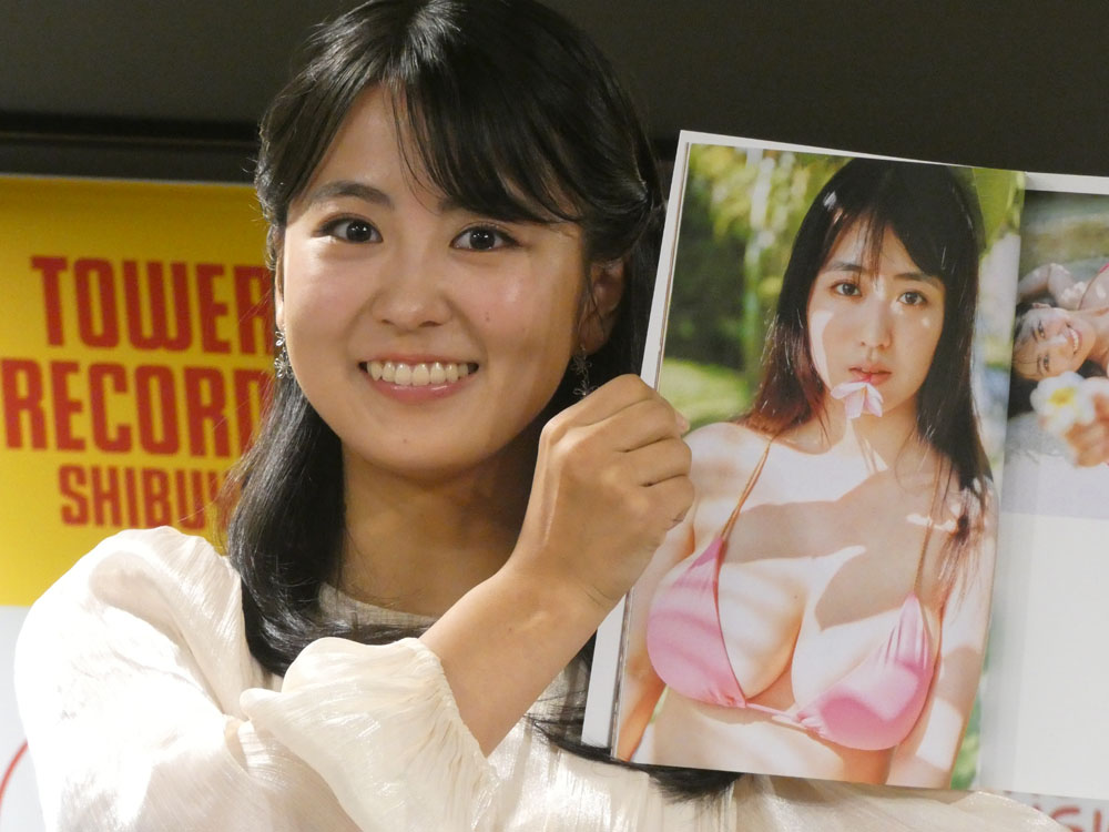 「写真集を発売されて、率直な感想は?」では、「凄く嬉しいです。1年前にグラビアを始めたのですが、写真集と言う言葉、自分が出せるとも思っていなかったし、1年で写真集を出せるのが嬉しくて、今日を無事に迎えられて、嬉しいです。」とデビューから写真集を出すとは思って無かった様子でした。福井さんは、特に大きな賞やタイアップの経験は無く、実力で写真集を出したと言えます。